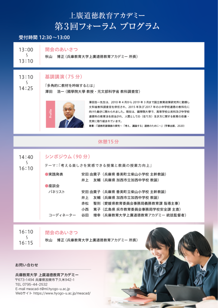 兵庫教育大学上廣道徳教育アカデミーでは、